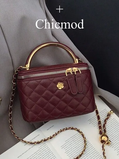 حقيبة يد صغيرة مربعة مصنوعة من قماش مطرز بنقشة مربعات عصرية